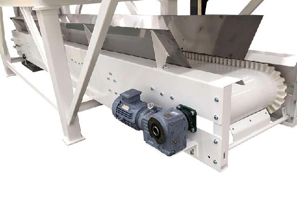 皮帶輸送機根據用途可分為:重型皮帶輸送機和輕型皮帶輸送機,污泥脫水行業(yè)主 要采用重型皮帶輸送機。 水平輸送機至于壓濾機底部,采用可承重橫梁,增加導泥裝置,重型支腿,可以把 壓濾機直接放置在輸送機上。